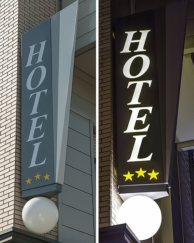 Le insegne bifacciali sono estremamente versatili in termini di forme, misure e materiali utilizzabili.