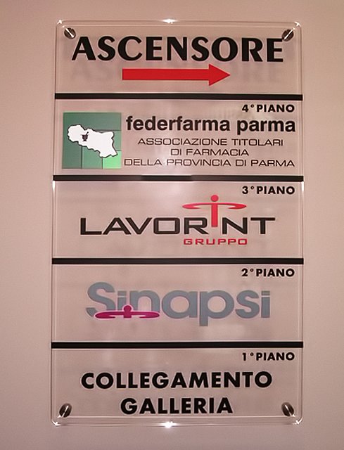 Le targhe possono essere mono- o multi-azienda, per interni od esterni, realizzate in plexiglass, in alluminio, bombate o piane.